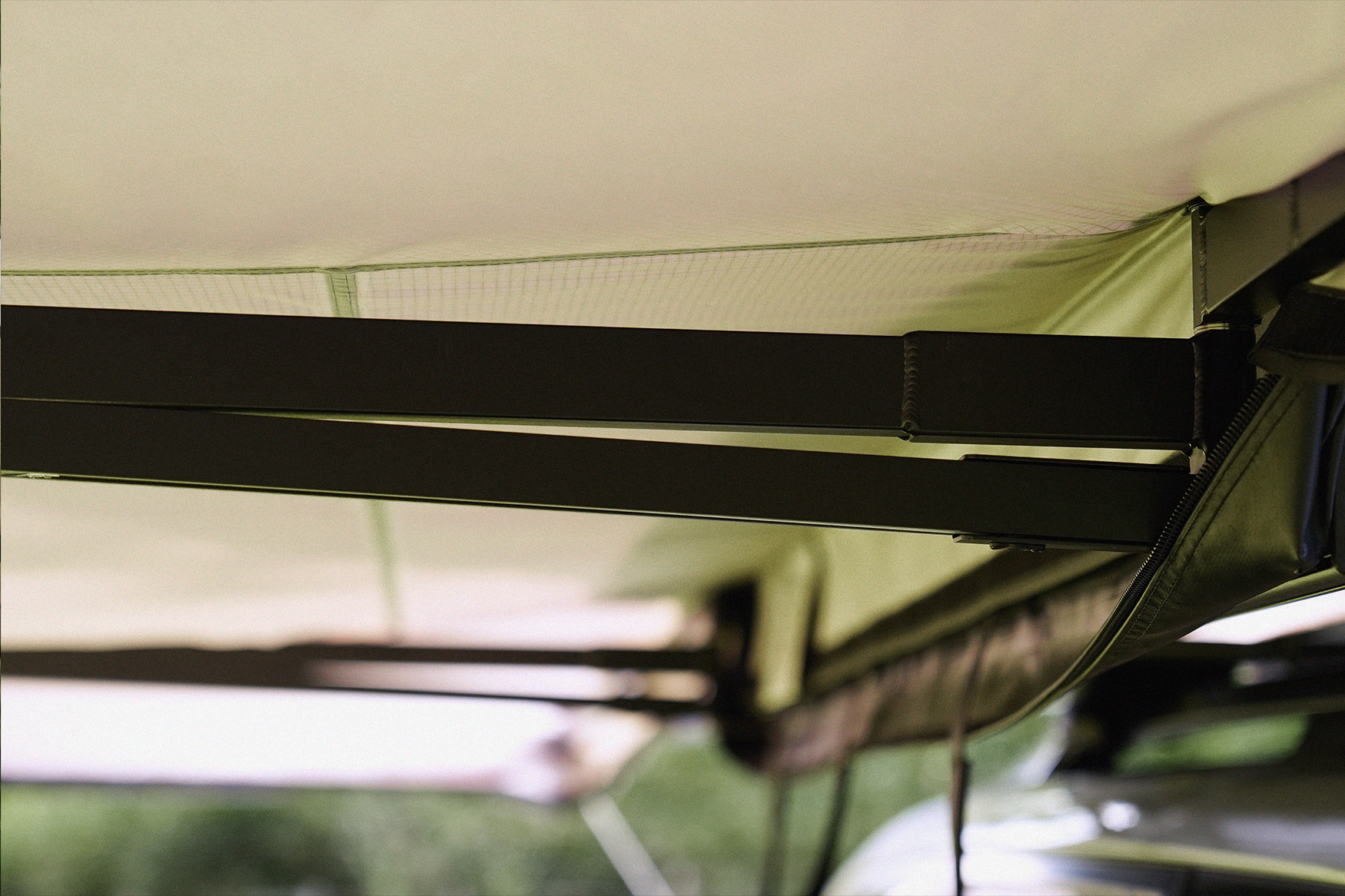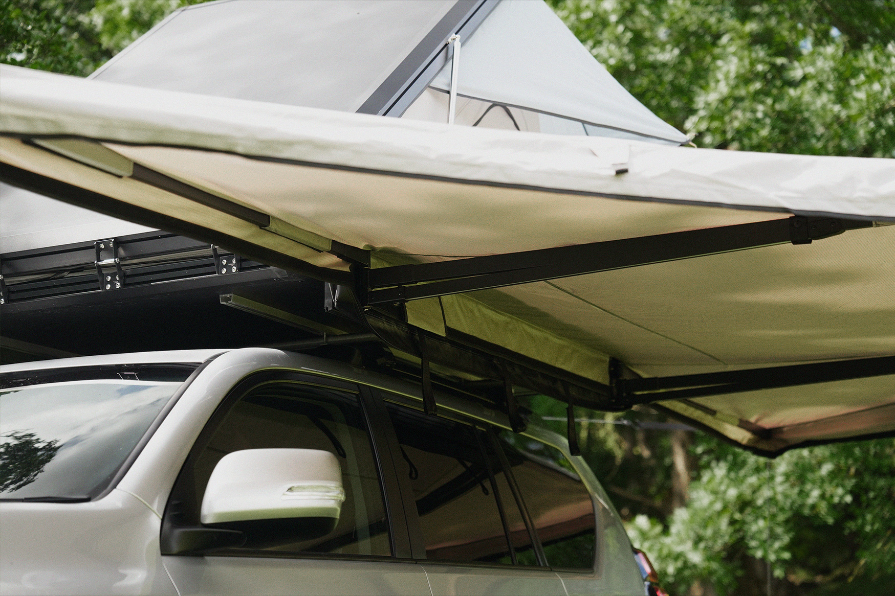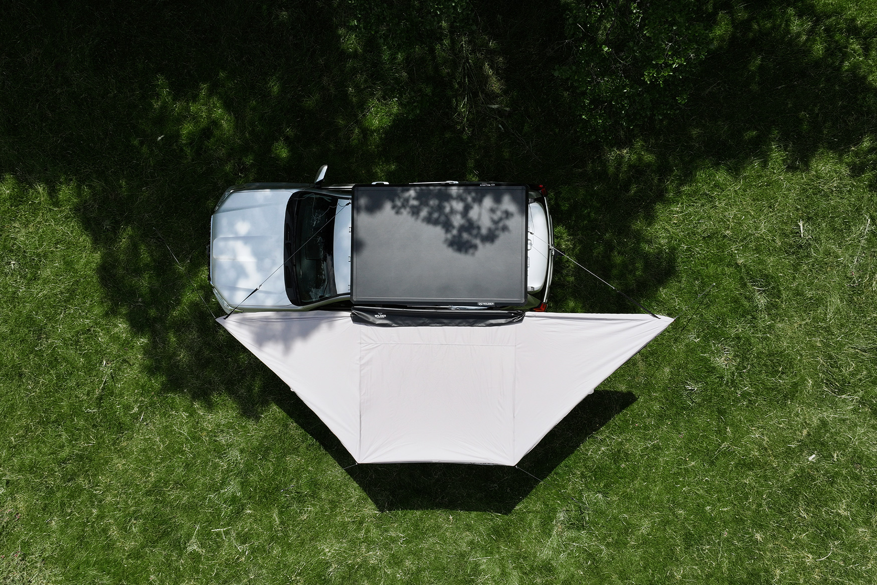 The Eryr 180 is a 180° free-standing awning that opens in seconds to create a broad, practical shelter around the vehicle. With a two-metre radius of coverage and roughly eight square metres of protected space, it provides substantial shelter from sun and rain. Designed to fit any roof rack and to stand up under rain and sun alike, it gives immediate, dependable shelter without complication.